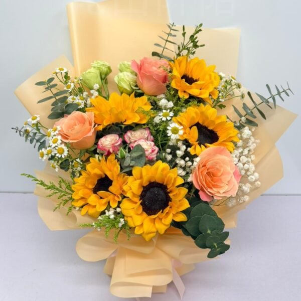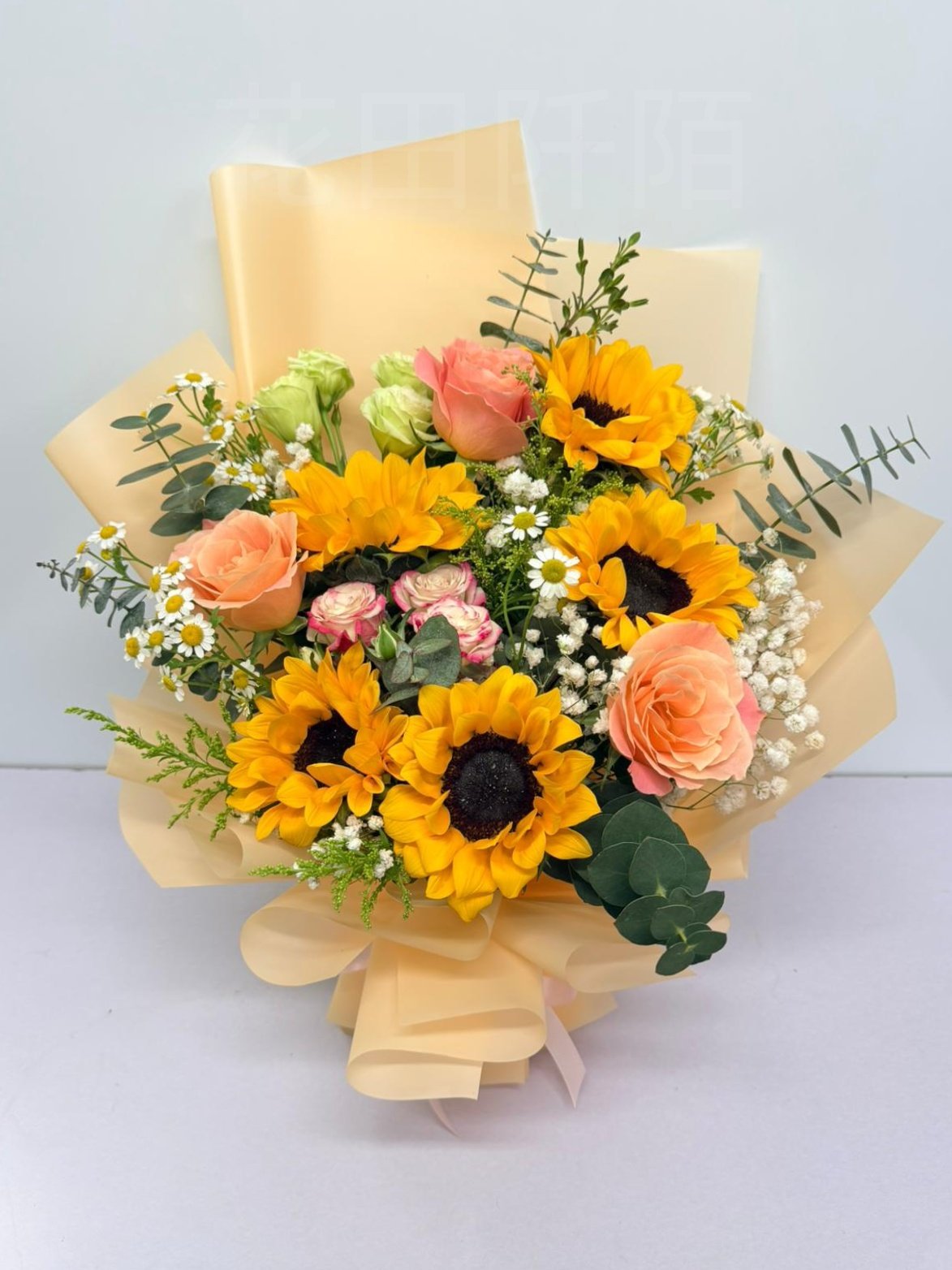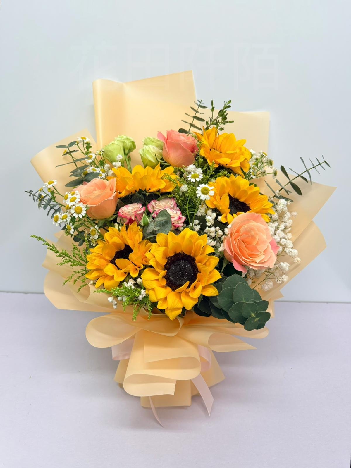 編號:FBSR99031 5枝向日葵、玫瑰、洋桔梗、洋甘菊、滿天星