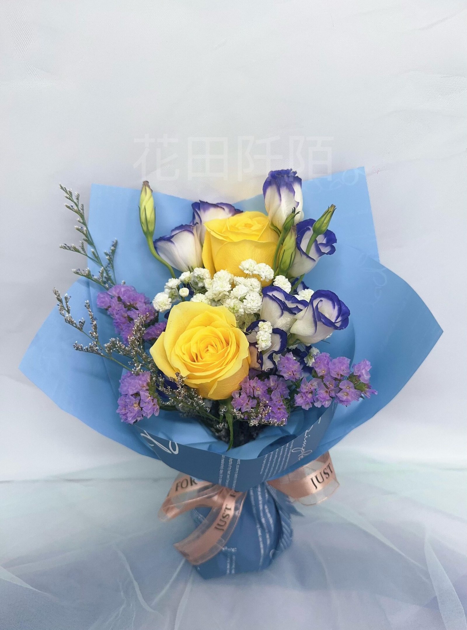 編號:FBR99010 11枝香檳色玫瑰、粉色洋桔梗、滿天星