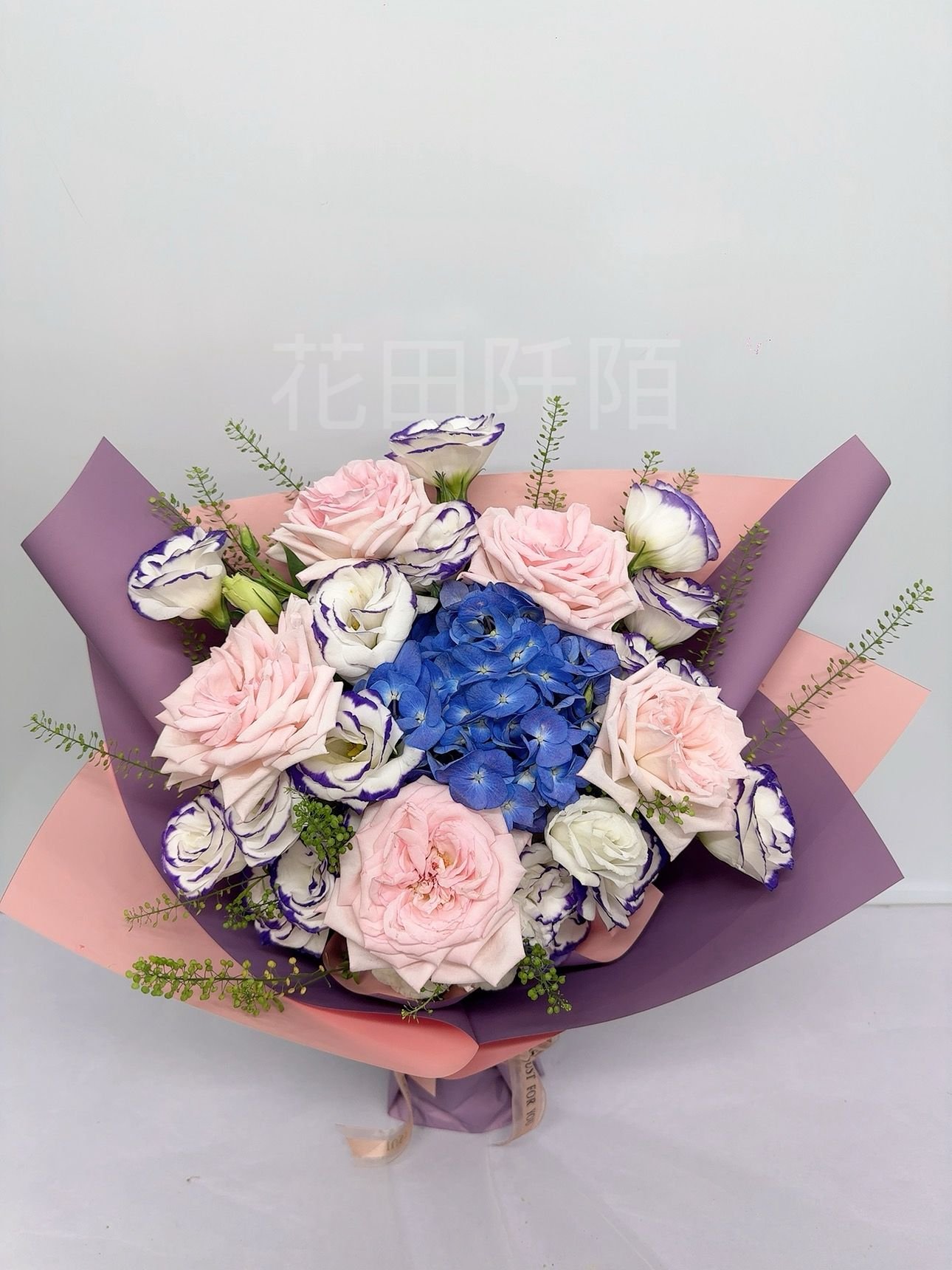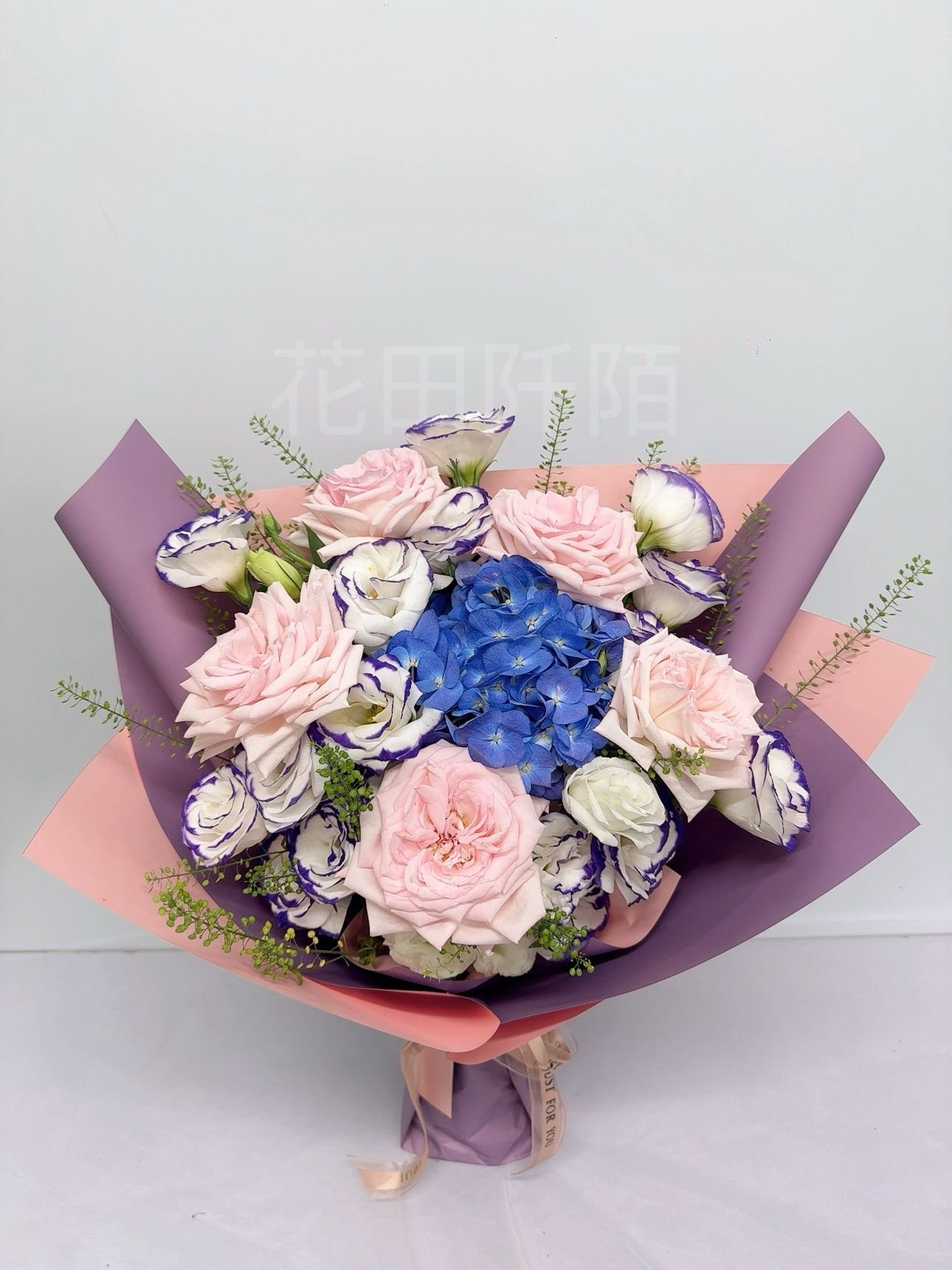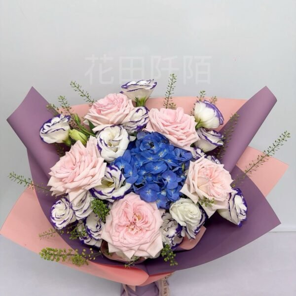 花材:5枝玫瑰,繡球,洋桔梗