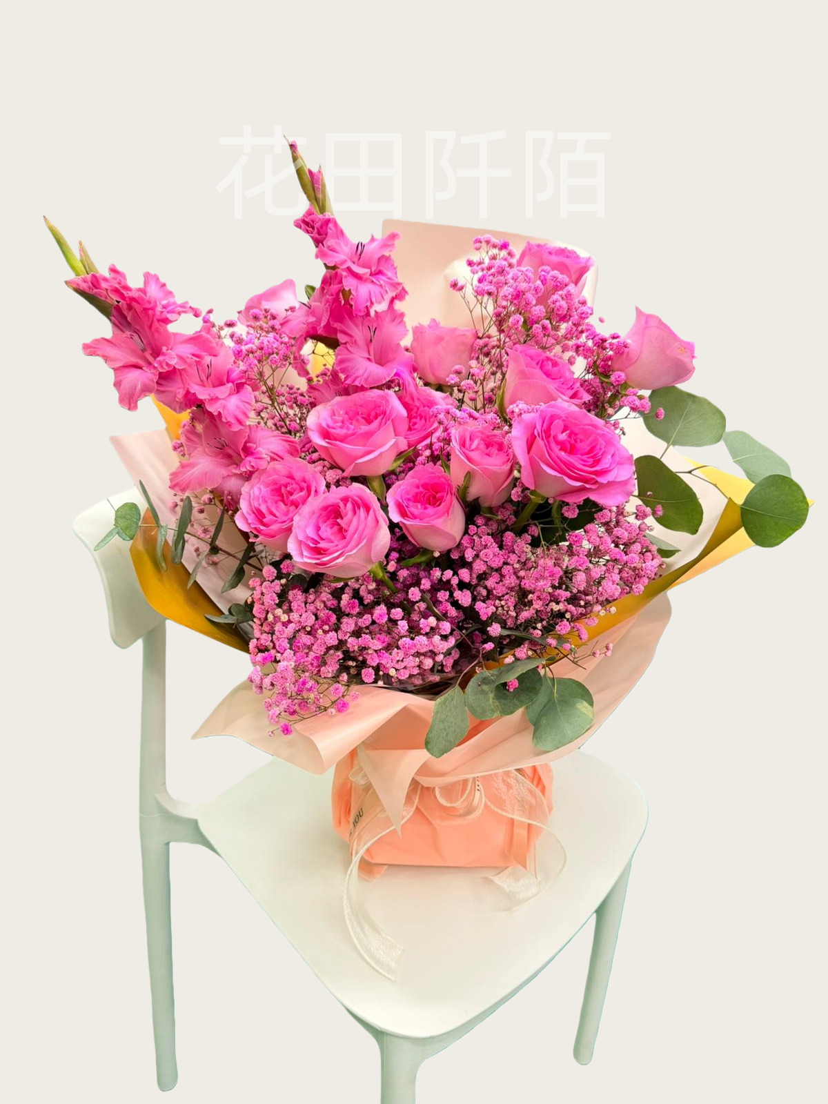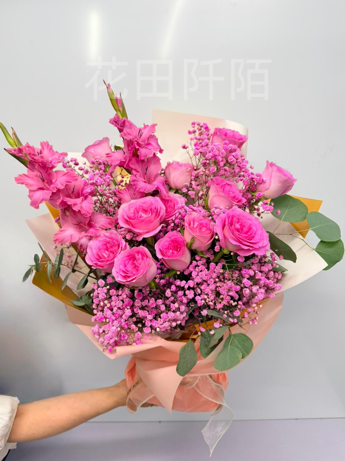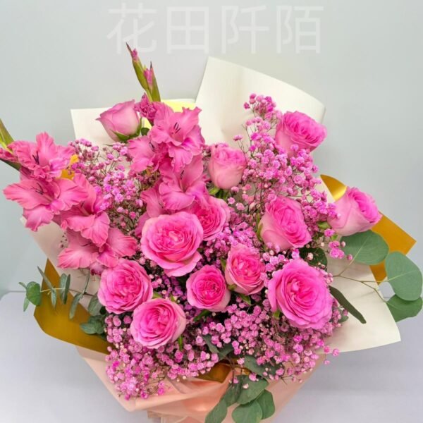 花材:12枝玫瑰,劍蘭,滿天星