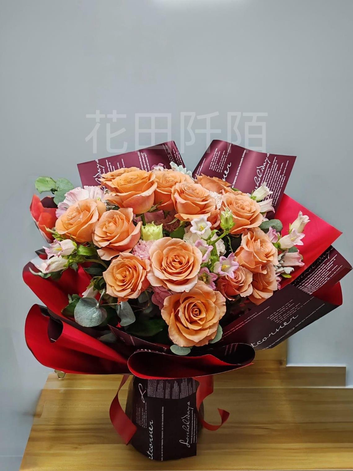 花材:14枝玫瑰,洋桔梗,風鈴花