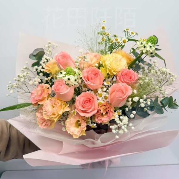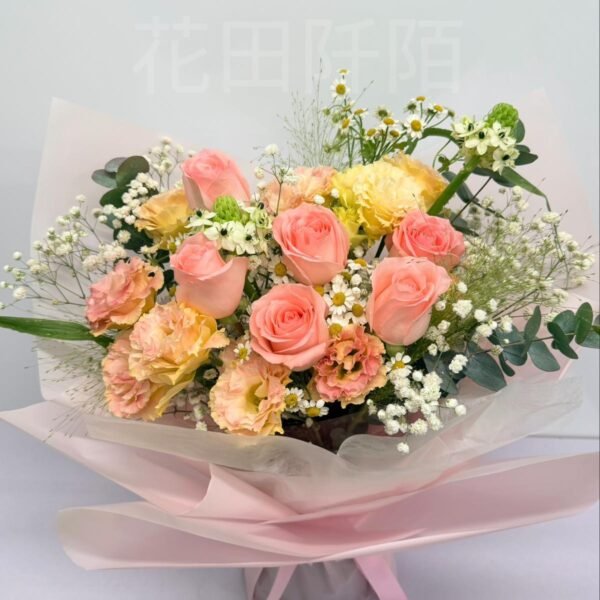 編號:FBR99121 粉玫瑰、粉香檳色洋桔梗、特色配花