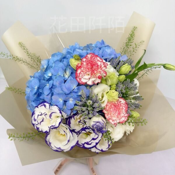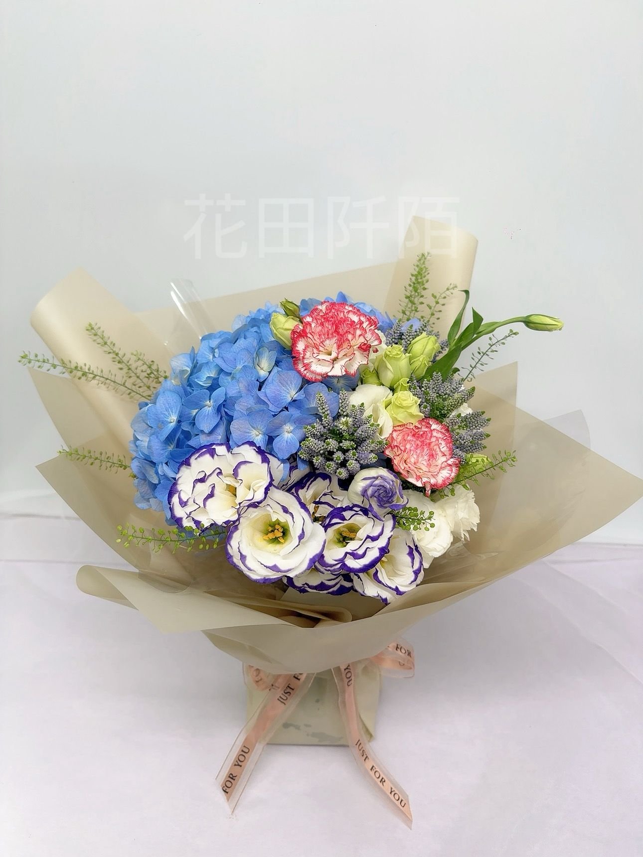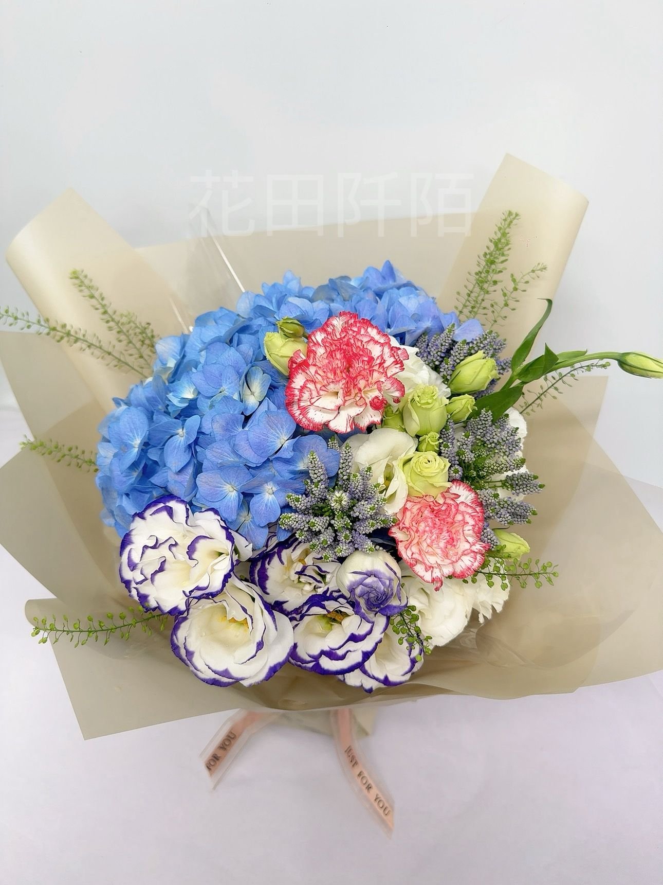 編號:FBR99010 11枝香檳色玫瑰、粉色洋桔梗、滿天星