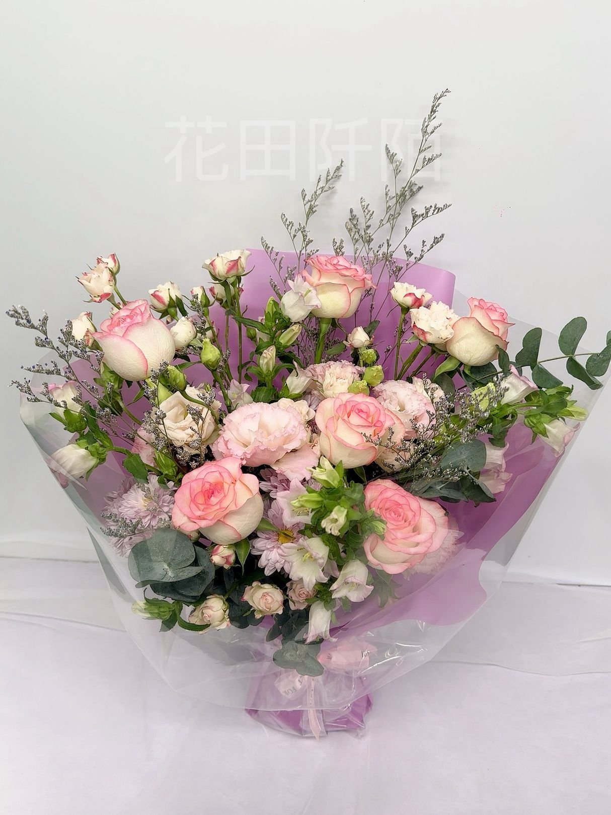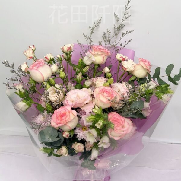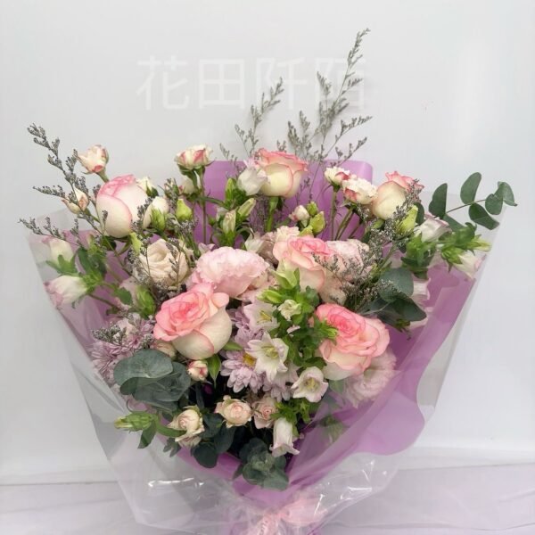 花材:6枝粉玫瑰,多頭小玫,洋桔梗,小菊