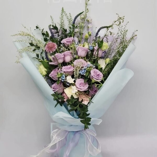 花材:12枝玫瑰,洋桔梗,藍星花