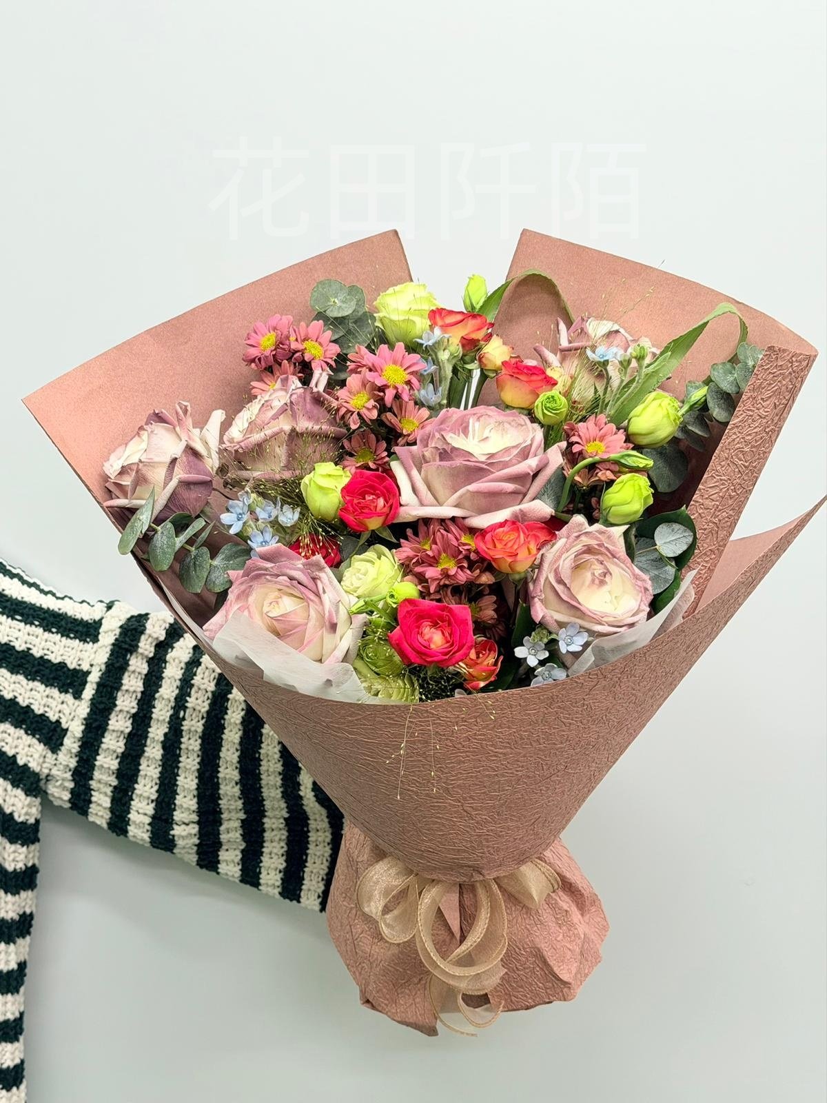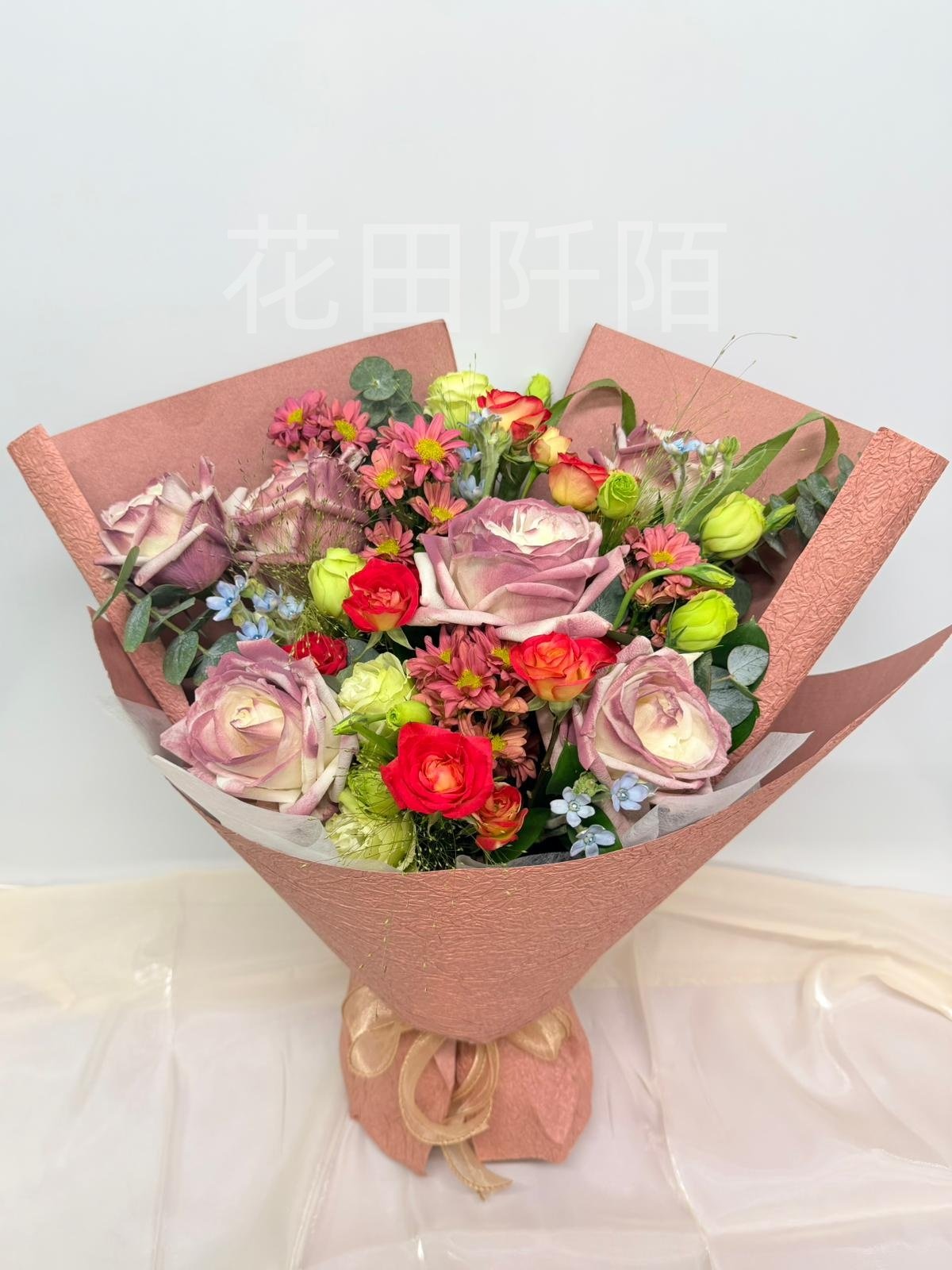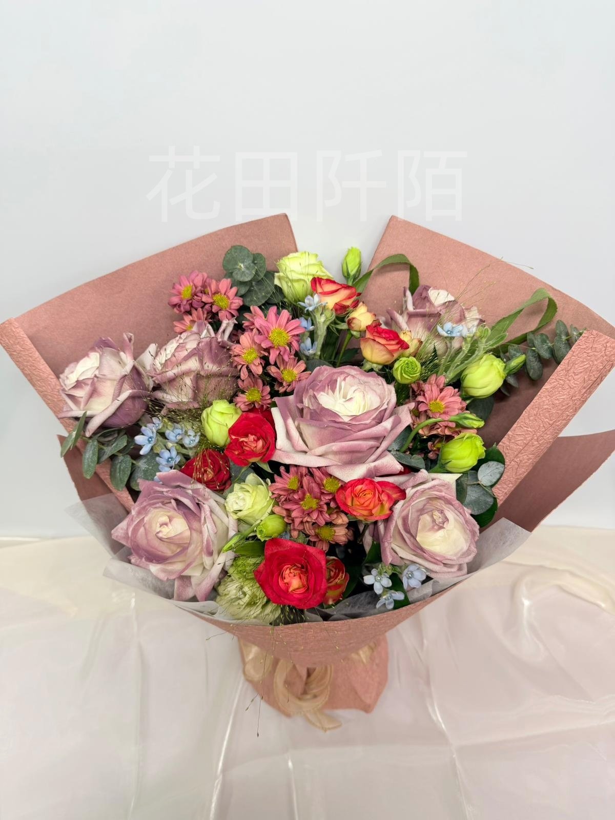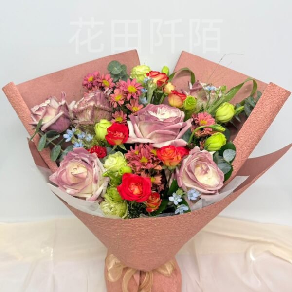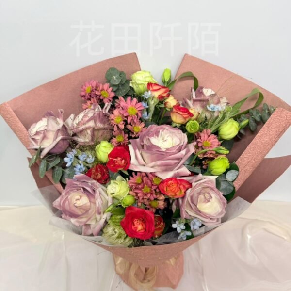 編號:FBR99134 6枝玫瑰、愛麗絲小玫瑰、洋桔梗、粉色小菊、配花